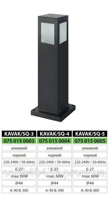 Світильник садово-парковий KAVAK/SQ-3 Е27 – стильний світильник стовпчик під джерело освітлення з типом цоколя E27 та максимальною потужністю до 60 Ватт. Ви можете самі вибрати лампочку, характеристики якої, такі як : потужність, колірність, тощо, найбільше підходять для вашого екстер’єру.